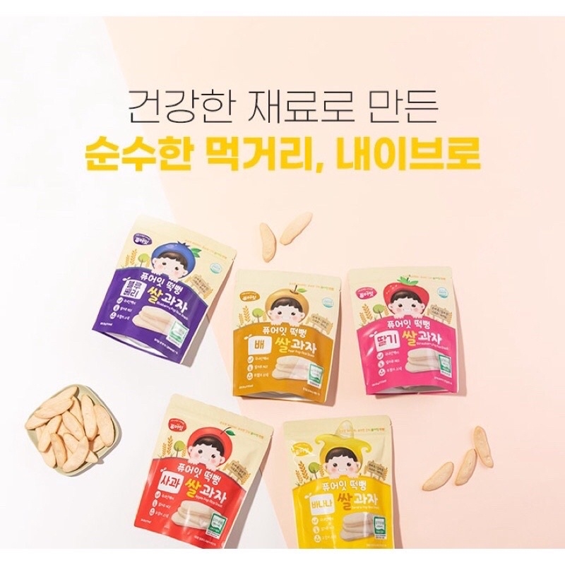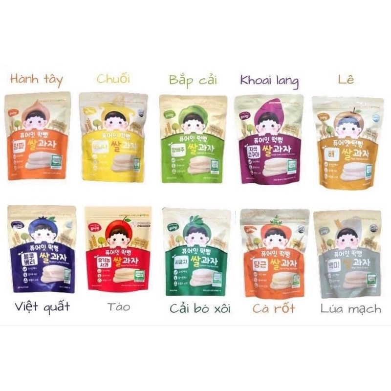 Mẹ tham khảo dòng BÁNH GẠO HỮU CƠ của hãng Naebro nhé, bánh gạo được kết hợp thêm rau củ và trái cây sạch dành cho bé yêu từ 6 tháng trở lên.