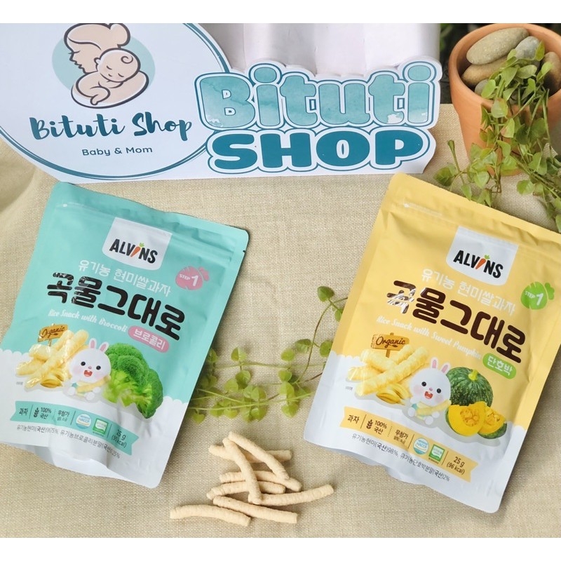 👉 Bánh gạo lứt ăn dặm vị bông cải xanh Alvins 25g ( dạng que ) cho bé từ 6 tháng tuổi .