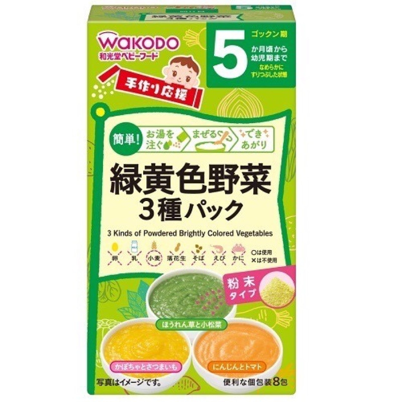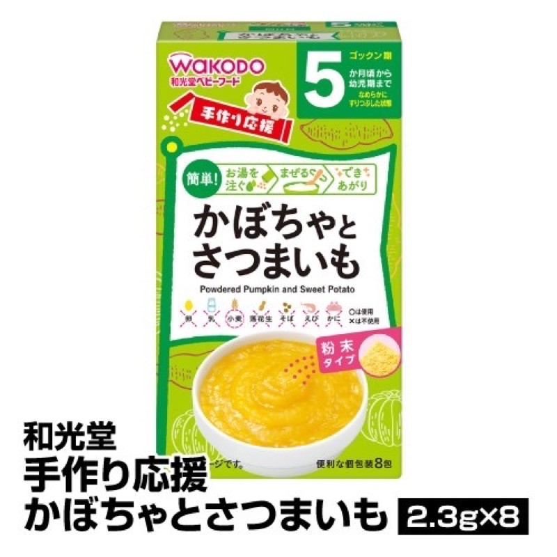 - Mix 3 loại bột dành cho bé từ 5m gồm rau bina bó xôi, bí đỏ + khoai lang & cà chua + cà rốt (Hộp gồm 8 gói mỗi gói 2 - 2.3g).