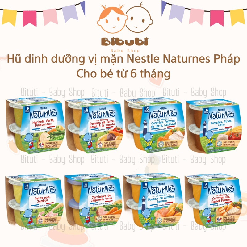 Hũ dinh dưỡng vị mặn Nestle NaturNes Pháp cho bé từ 6 thángXuất xứ: PhápGiới thiệu cho bé hương vị thơm ngon của thiên nhiên bằng các bữa ăn NaturNes® hoàn chỉnh!!Kết cấu thức ăn thích hợp cho bé từ 6 tháng tuổiTất cả các công thức nấu ăn đều đáp ứng nhu cầu cụ thể của bé:- với các loại rau được chọn khi chín- thịt tươi tự nhiên, cá hoang dã- nguyên liệu được nấu riêng và hấp nhẹ để giữ được hương vị thơm ngon của thiên nhiên- 100% nguyên liệu có nguồn gốc tự nhiên- không có dư lượng thuốc trừ sâu- không thêm muối- không có chất bảo quản¹- không chất tạo màu——————Bituti Shop - chuyên ăn dặm hàng air