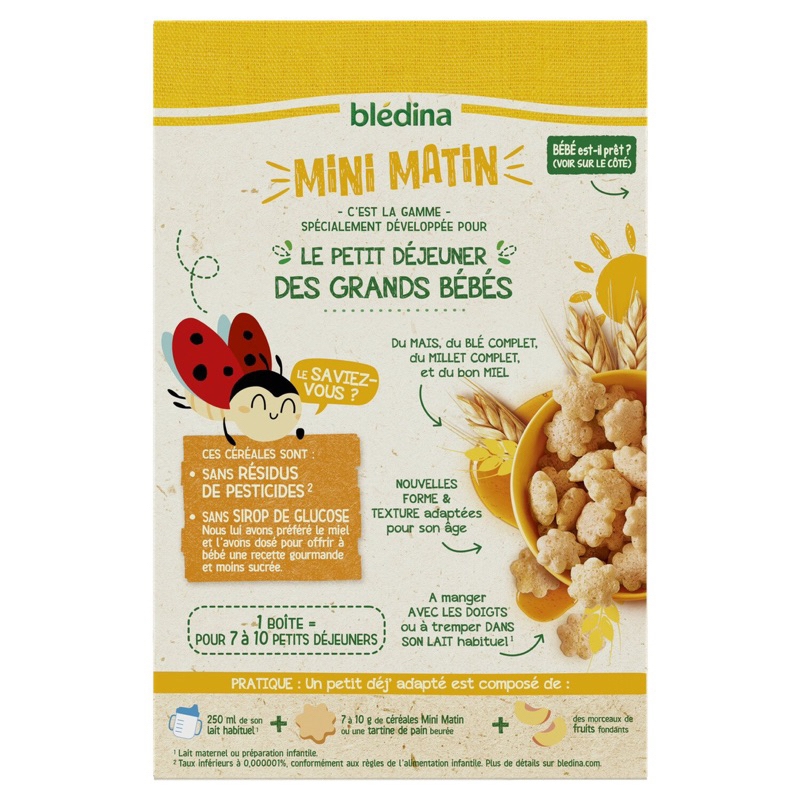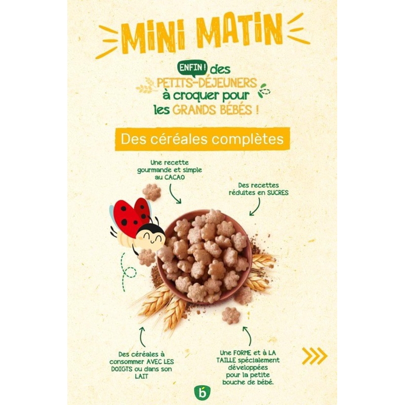 Mini Matin là dòng sản phẩm được phát triển đặc biệt dành cho bữa sáng của bé. •Công thức với ngũ cốc nguyên hạt, một chút mật ong hoặc đường với ca cao, vitamin B1 , có thể dùng cùng với trái cây và sữa. •Ngũ cốc có hình dạng và kích thước phù hợp với miệng nhỏ của bé cũng như kết cấu giòn tan trong miệng được thiết kế đặc biệt cho lứa tuổi của bé, luôn có thành phần dinh dưỡng phù hợp. Ngũ cốc Matin mini có hình dạng giúp bé phát triển các kỹ năng vận động tinh: ăn bằng ngón tay hoặc nhúng vào sữa thông thường Thành phầnThành phần: Bột 86% (ngô, lúa mì nguyên hạt 28% (GLUTEN), kê nguyên hạt) - Đường - Bột cacao 3% - Vitamin B1Ngũ cốc dành cho trẻ em không có chất tạo màu, không chất bảo quản; Không có dầu cọ; Nguồn chất xơ; Không có dư lượng thuốc trừ sâu——————Bituti Shop