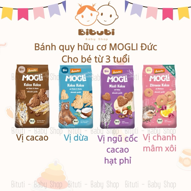 Bánh quy trẻ em của MOGLi sẽ đưa các bé yêu đến với thế giới đầy thú vị. Những chiếc bánh quy này có hình bông hoa kỳ diệu và mang đến sự kết hợp thú vị của hương vị mâm xôi và vị chua của chanh. Được làm từ một số thành phần được lựa chọn cẩn thận, chúng được làm ngọt bằng cây thùa và nhẹ nhàng làm hài lòng khẩu vị. Bột lúa mì tạo cho bánh quy độ giòn ngon, khiến chúng trở thành món ăn vặt thú vị. Những chiếc bánh quy này rất thích hợp cho những cuộc phiêu lưu nhỏ và những giờ nghỉ ngơi ngọt ngào, mời bạn thưởng thức.Bánh ngọt từ phương pháp canh tác sinh học: bánh quy bơ với bột lúa mì nguyên chất quý giá, được tinh chế bằng ca cao nguyên chất và làm ngọt bằng cây thùa – một món ăn có hương vị tự nhiên ngon hơn.không thêm hương vịvới chính tảvới vị ngọt của cây thùavới 8 thành phầnBánh quy trẻ em của MOGLi là món ăn nhẹ ngon miệng cho cả gia đình. Những góc bánh quế giòn tan này được phủ lớp kem trái cây làm từ chanh và bơ dừa, tạo nên sự kết hợp hấp dẫn không thể cưỡng lại. Được làm từ đậu gà không chứa gluten và bột gạo, chúng đặc biệt được dung nạp tốt. Chúng cũng được làm ngọt bằng cây thùa, mang lại cho chúng vị ngọt tự nhiên. Những chiếc bánh quy này lý tưởng cho trẻ em từ 3 tuổi trở lên và là món ăn nhẹ ngon miệng.