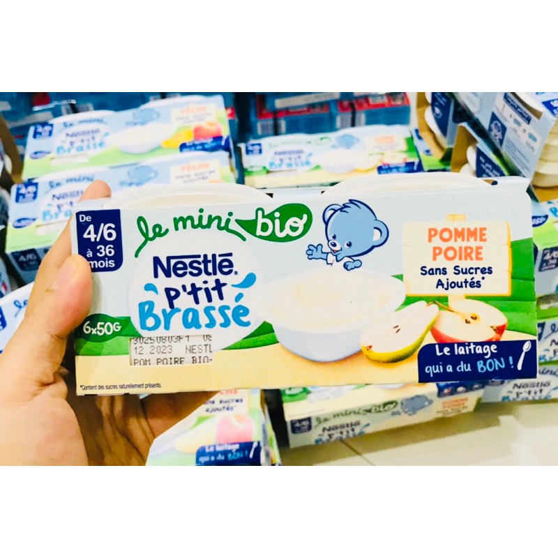 Sữa chua Nestle lốc 6hũ x 50g đủ vị cho bé từ 6tháng Mẫu mới nhất trên kệ siêu thị Pháp Lốc 6hũ x 50gr vừa cữ ăn của bé , cực kỳ tiện lợi khi mang đi chơi đi du lịch và phù hợp để giới thiệu cho bé bắt đầu tập làm quen với sữa chua. Xuất xứ Pháp HSD: từ 12/2023 - 1/2024Sữa chua là thực phẩm được chế biến từ sữa, ngoài việc bổ sung các chất dinh dưỡng hệ thống tiêu hóa, giúp cho việc tiêu hóa các bữa ăn khác được dễ dàng hơn. Sữa chua Nestle thơm ngon, thật sánh mịn, tròn vị nguyên kem và bổ dưỡng, được làm từ nguồn sữa tươi nguyên chất thông qua quá trình lên men tự nhiên không chất bảo quản, sản xuất theo công nghệ thanh trùng hiện đại giữ trọn các dưỡng chất. Hỗ trợ tốt cho sự phát triển & tăng trưởng của bé.——————Bituti Shop
