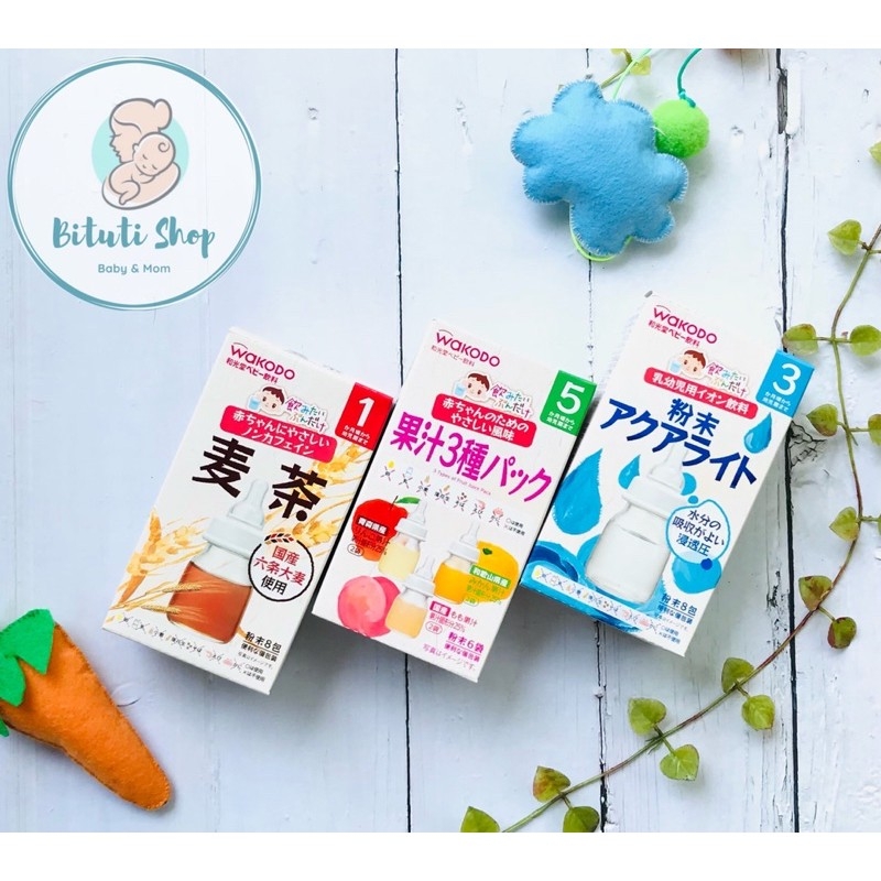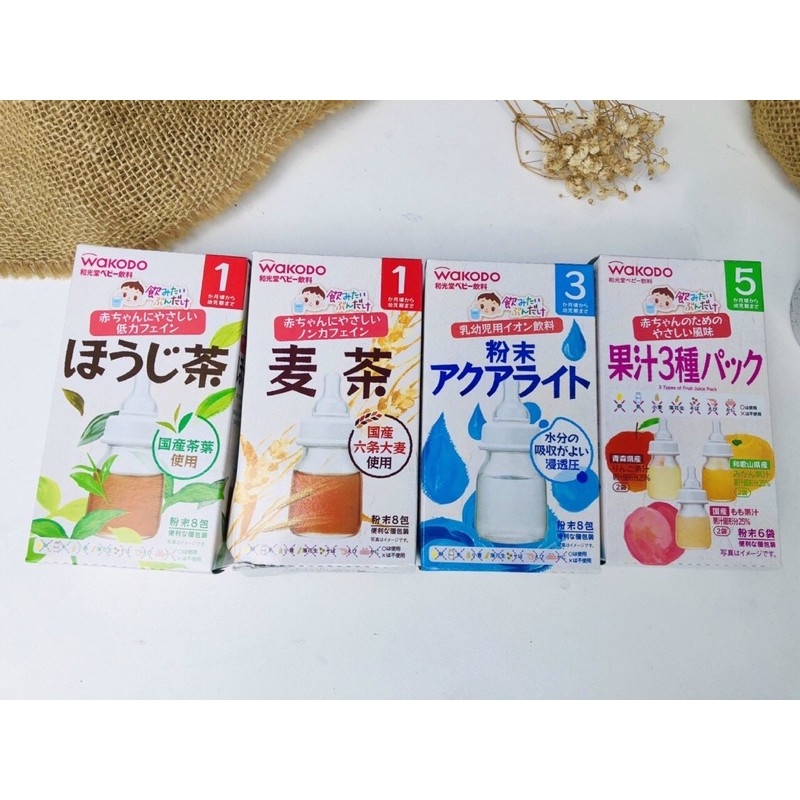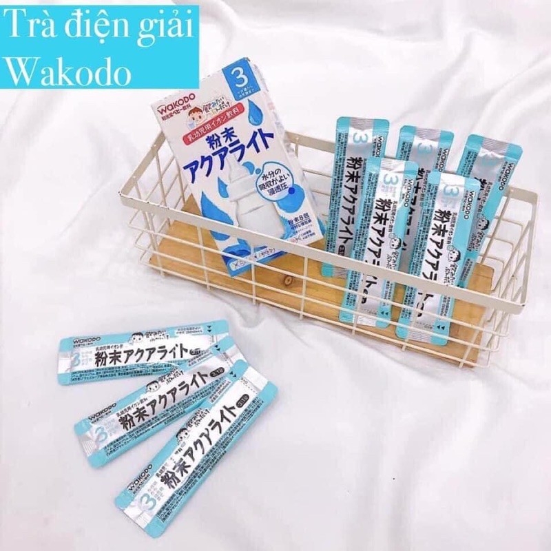 🍶 Trà điện giải Wakodo (dành cho bé 3 tháng trở lên): trà điện giải giúp bù nước vào cơ thể bé khi bé bị tiêu chảy, sốt, hoặc khi trời quá nắng nóng.