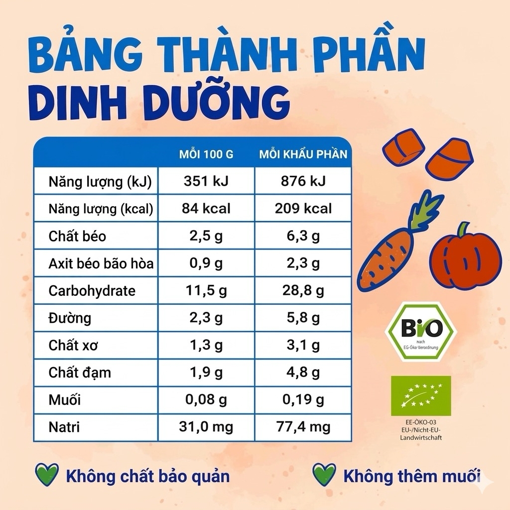 Ba mẹ bận rộn nhưng vẫn muốn con yêu có bữa ăn ngon như mẹ tự tay nấu? Đừng lo, đã có Alete Kinder Teller – dòng sản phẩm bữa ăn hoàn chỉnh hữu cơ (Bio) dành cho bé từ 1 tuổi trở lên!🌟 Tại sao Alete Kinder Teller lại là "chân ái" của mẹ?✅ Chuẩn vị "Cơm mẹ nấu": Hương vị thơm ngon tự nhiên, được nêm nếm nhẹ nhàng bằng thảo mộc, phù hợp với khẩu vị non nớt của trẻ.✅ Kết cấu hoàn hảo: Dạng hạt, cục giúp bé rèn luyện kỹ năng nhai một cách thú vị.✅ Dinh dưỡng cân bằng: Bảng thành phần công khai, minh bạch, đầy đủ năng lượng và chất xơ giúp bé phát triển khỏe mạnh.🚫 "4 KHÔNG" từ Alete:• KHÔNG thêm đường.• KHÔNG thêm muối.• KHÔNG chất bảo quản.• KHÔNG phụ gia thực phẩm.🍱 Thực đơn đa dạng cho bé đổi bữa mỗi ngày:1. Spaghetti Bolognese: Mì Ý sốt bò bằm kinh điển.2. Ratatouille mit Couscous: Rau củ hầm kiểu Pháp bổ dưỡng.3. Risotto mit Kürbis: Cơm Risotto bí đỏ thơm ngậy.4. Mildes Chili con Carne: Thịt băm nấu đậu dịu nhẹ.⚡ Tiện lợi tối đa cho mẹ hiện đại:Chỉ mất 2 phút quay lò vi sóng hoặc 5-10 phút ngâm nước nóng là bé đã có ngay bữa ăn nóng hổi, đầy đủ dưỡng chất. Cực kỳ tiện lợi khi đi du lịch, dã ngoại hay những ngày mẹ bận bịu!📍 Hàng nội địa Đức - Chuẩn Bio——Bituti Shop